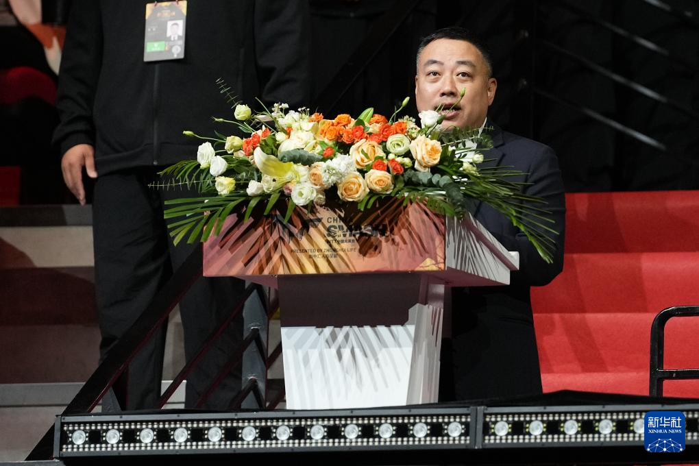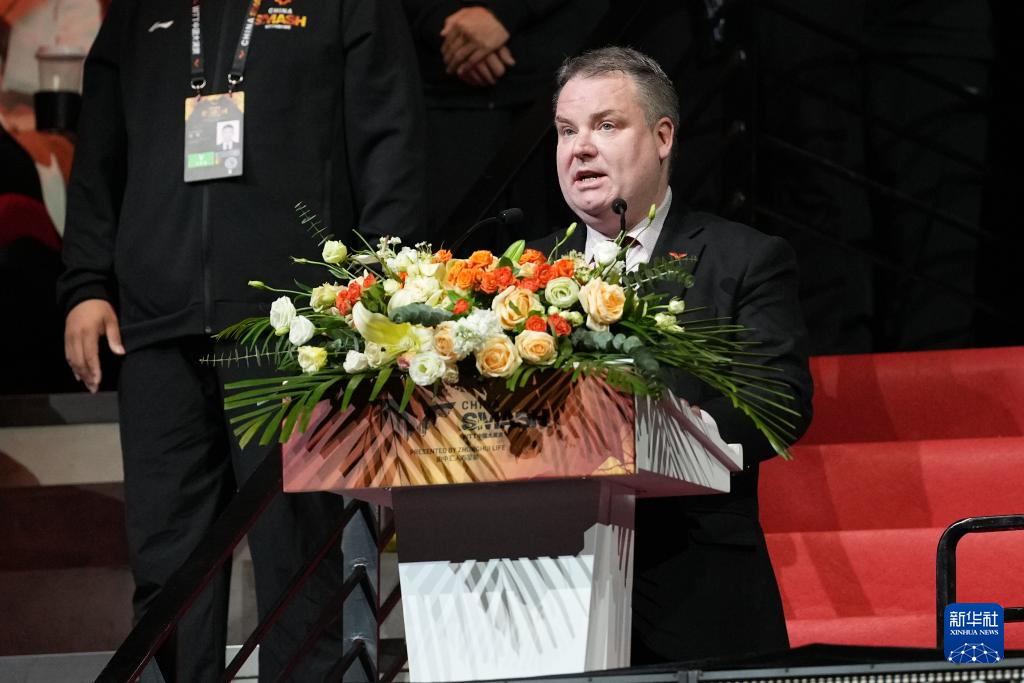 9月29日,WTT世界乒联首席执行官、国际乒联首席执行官史蒂夫·丹顿在开幕式上致辞。