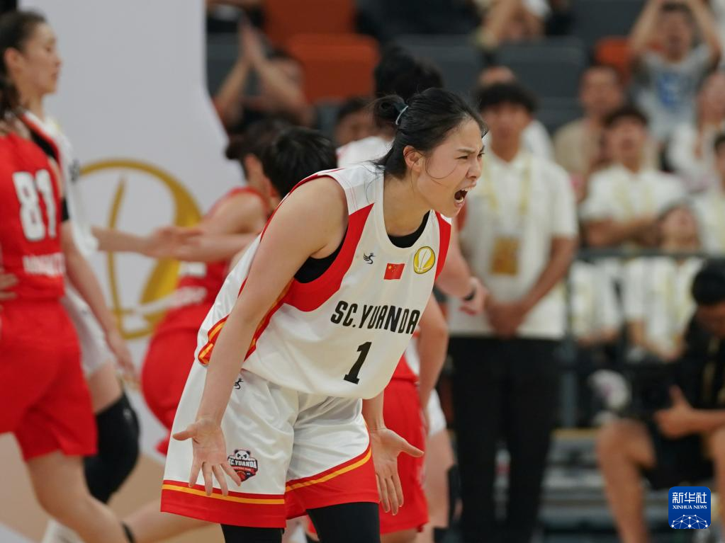 9月28日,中国四川远达美乐队球员王思雨在得分后庆祝。