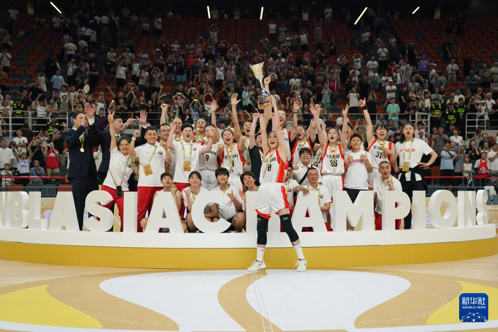 9月28日,中国四川远达美乐队球员及教练员在夺冠后庆祝。