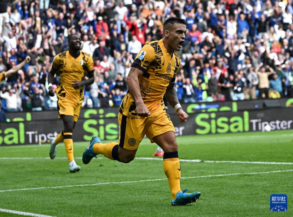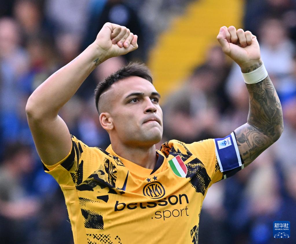9月28日,国际米兰队球员劳塔罗·马丁内斯庆祝进球。