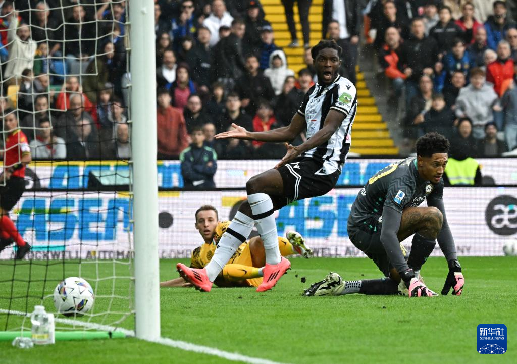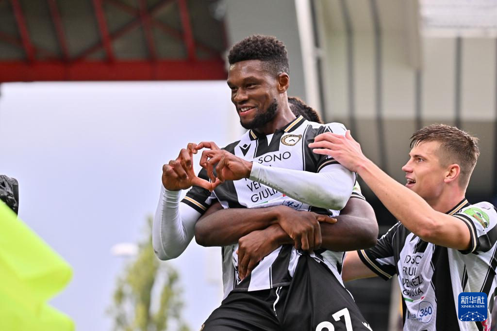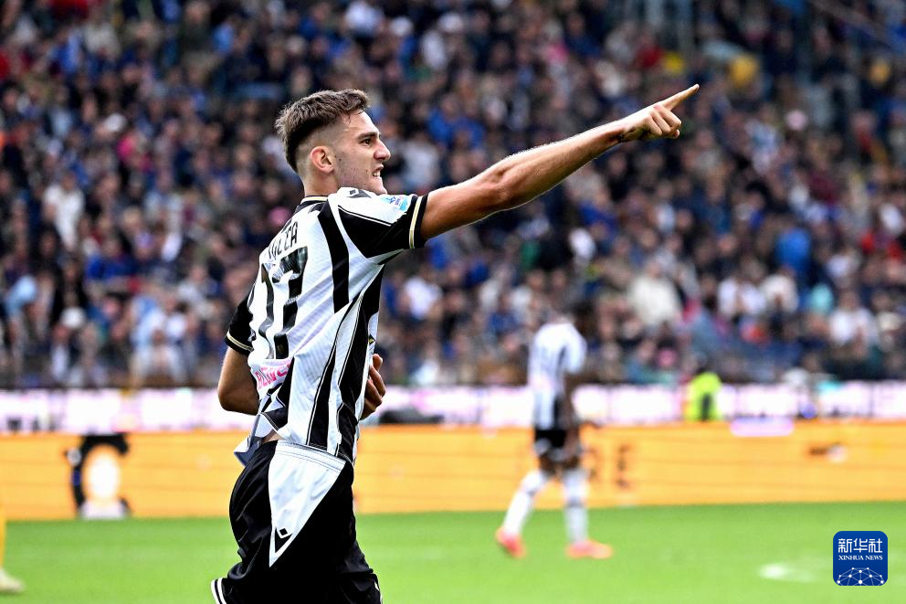 9月28日,乌迪内斯队球员卢卡庆祝进球。