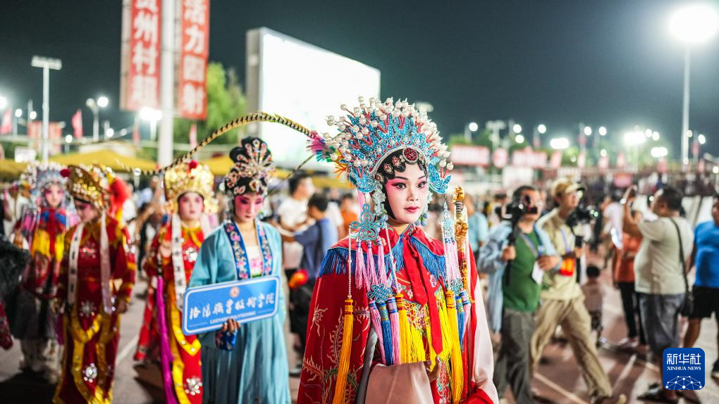9月28日,洛阳职业技术学院的演员们在“村超”足球场上表演。