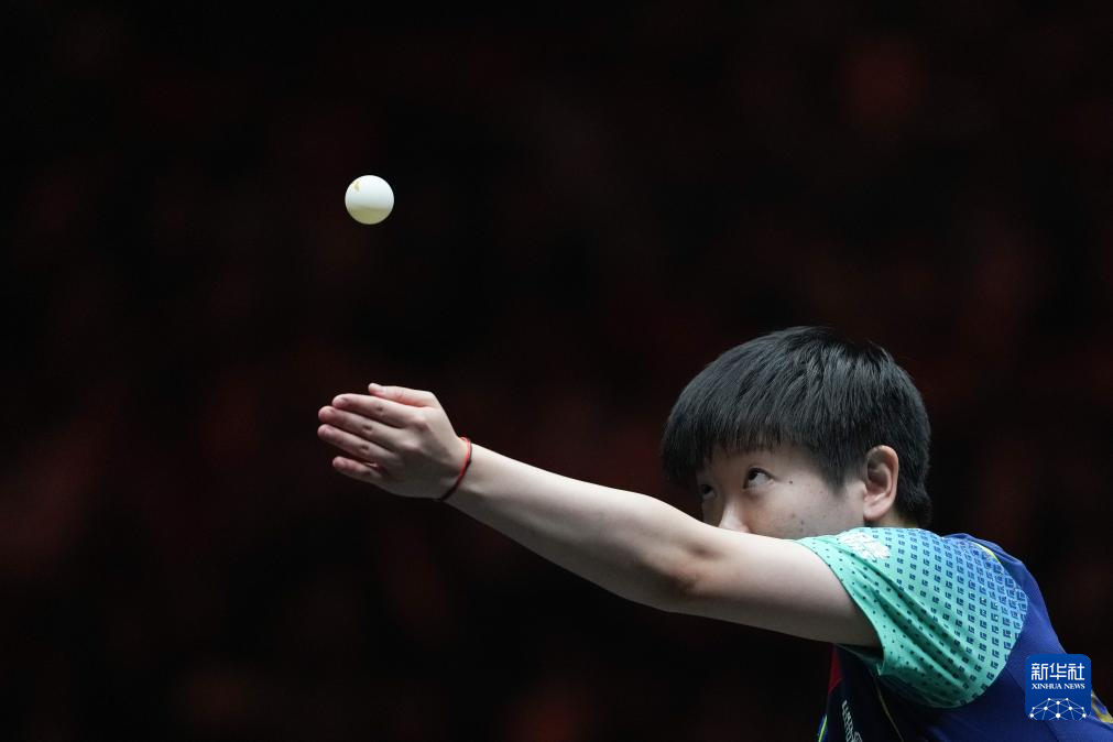 9月29日,中国选手孙颖莎在比赛中发球。