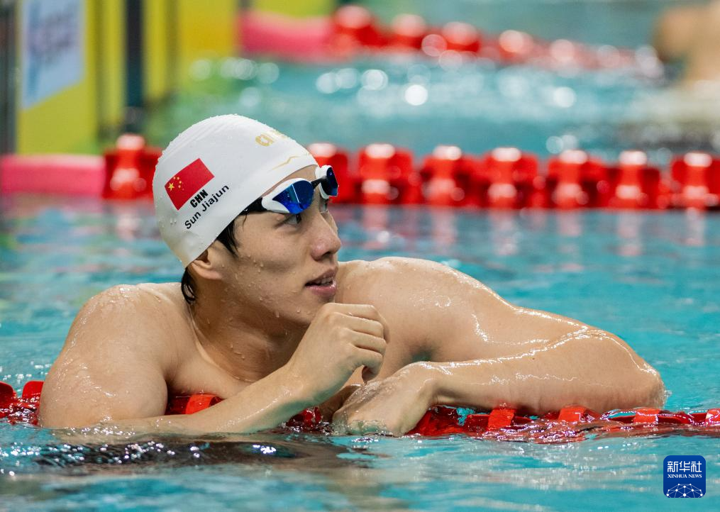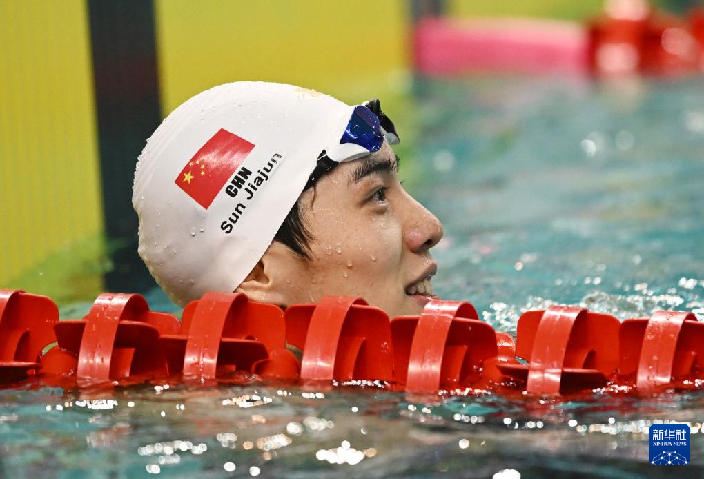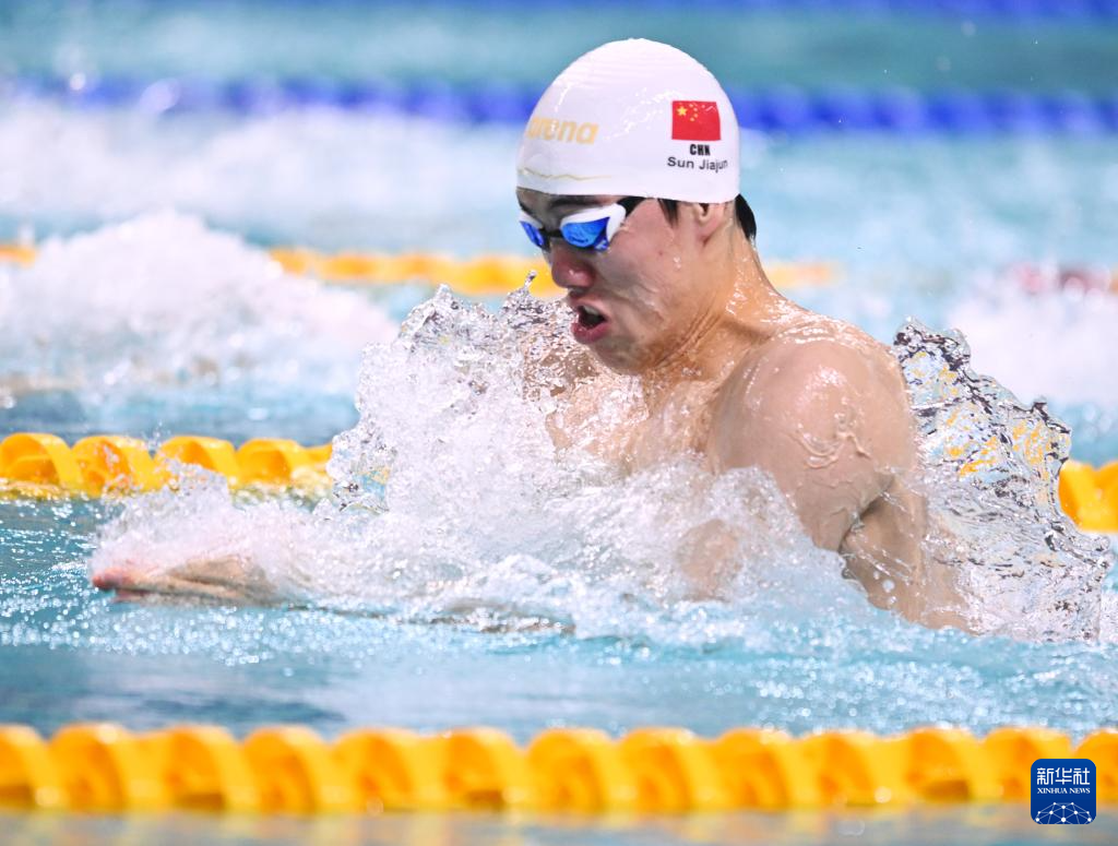 当日,在湖北武汉举行的2024年全国游泳锦标赛(25米)男子50米蛙泳决赛中,湖北浩沙队选手孙佳俊以25秒94的成绩获得冠军。