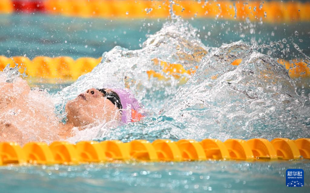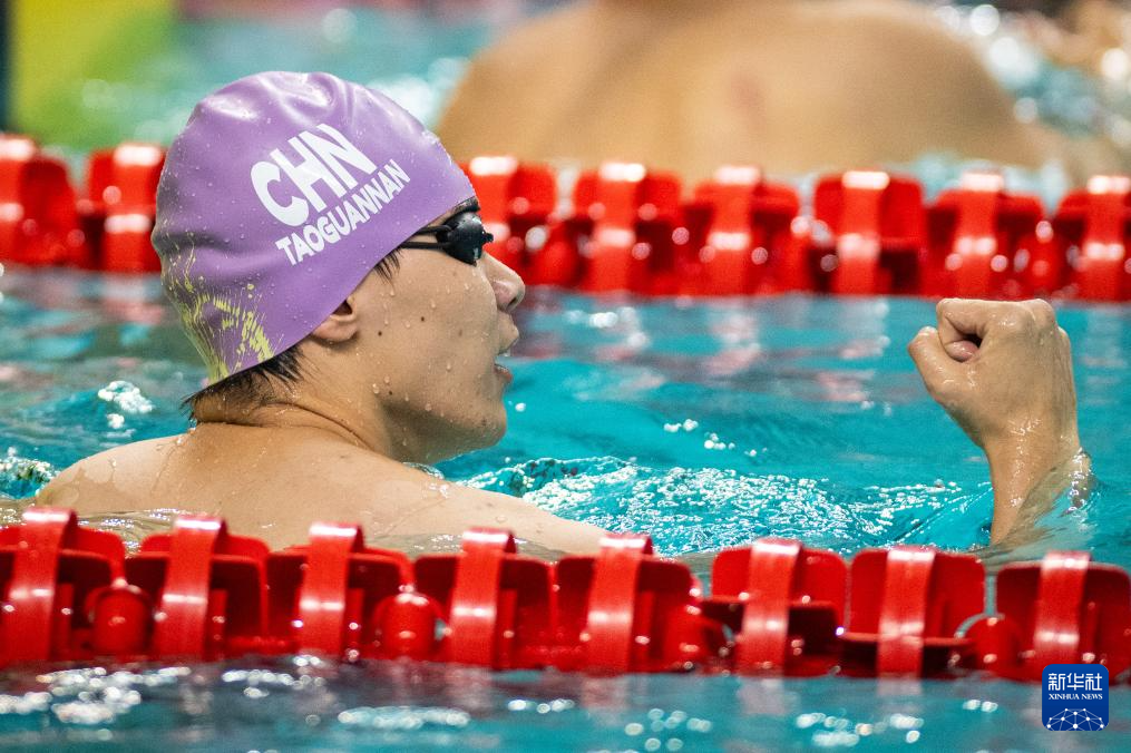 当日,在湖北武汉举行的2024年全国游泳锦标赛(25米)男子200米仰泳决赛中,广东队选手陶冠男以1分50秒76的成绩获得冠军。