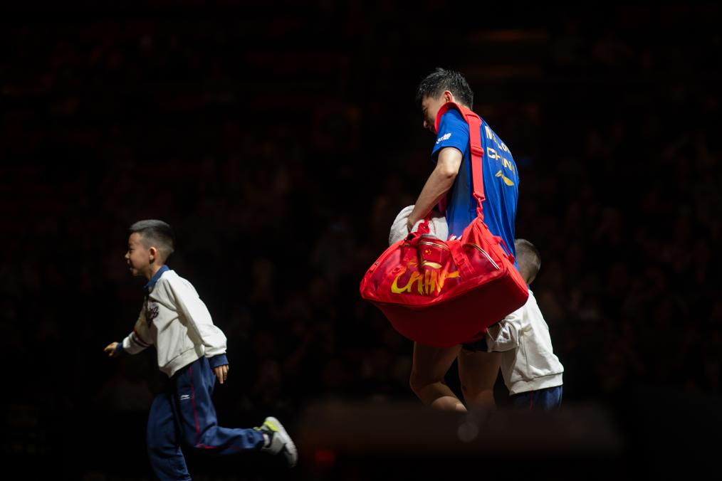 新华社北京9月30日电(记者岳冉冉、胡佳丽)30日晚的首钢冰球馆,灯光炫酷。入场仪式环节,马龙牵着两个儿子出场,全场掌声雷动。孩子们微笑着向观众招手,自信大方。