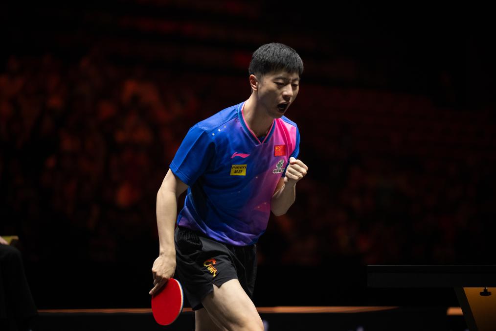 9月30日,马龙在比赛中庆祝得分。新华社记者 肖艺九 摄