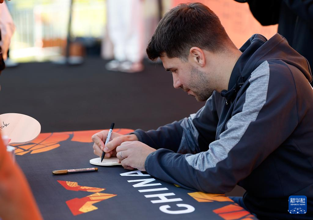 10月1日,德国球员帕特里克·弗朗西斯卡在大满贯公园举行的球员见面会上为球迷签名。