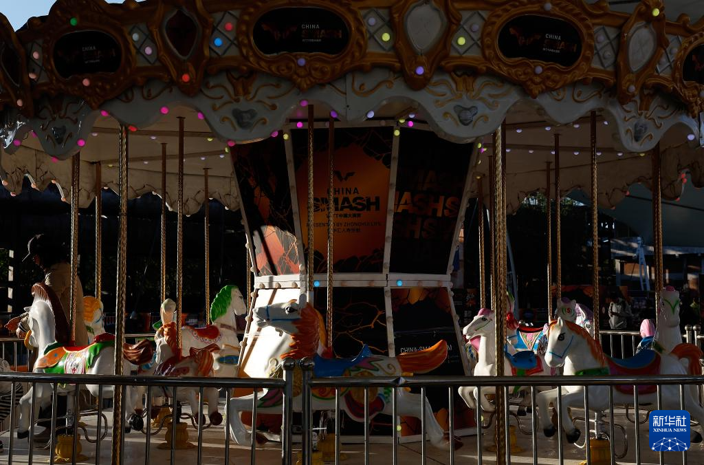 10月1日,一位女士在大满贯公园的旋转木马上。