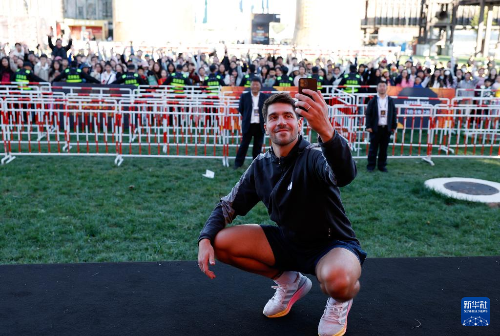 10月1日,德国球员帕特里克·弗朗西斯卡在大满贯公园举行的球员见面会上与球迷合影。