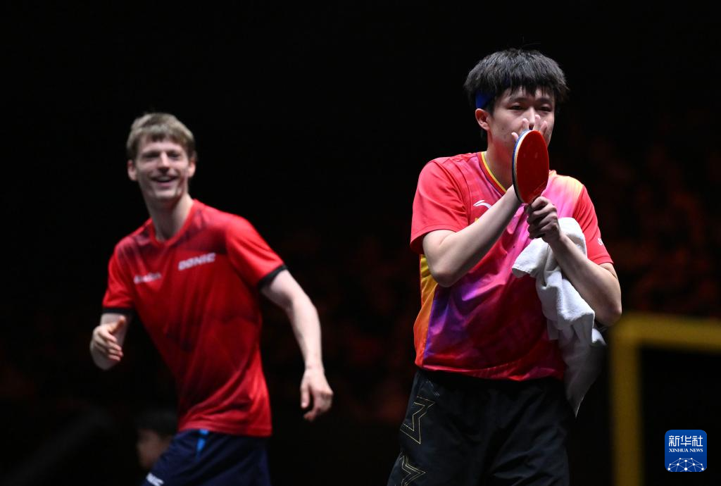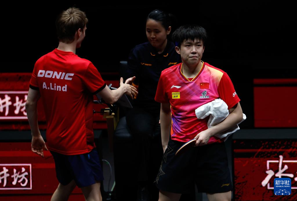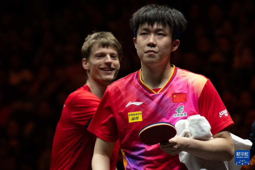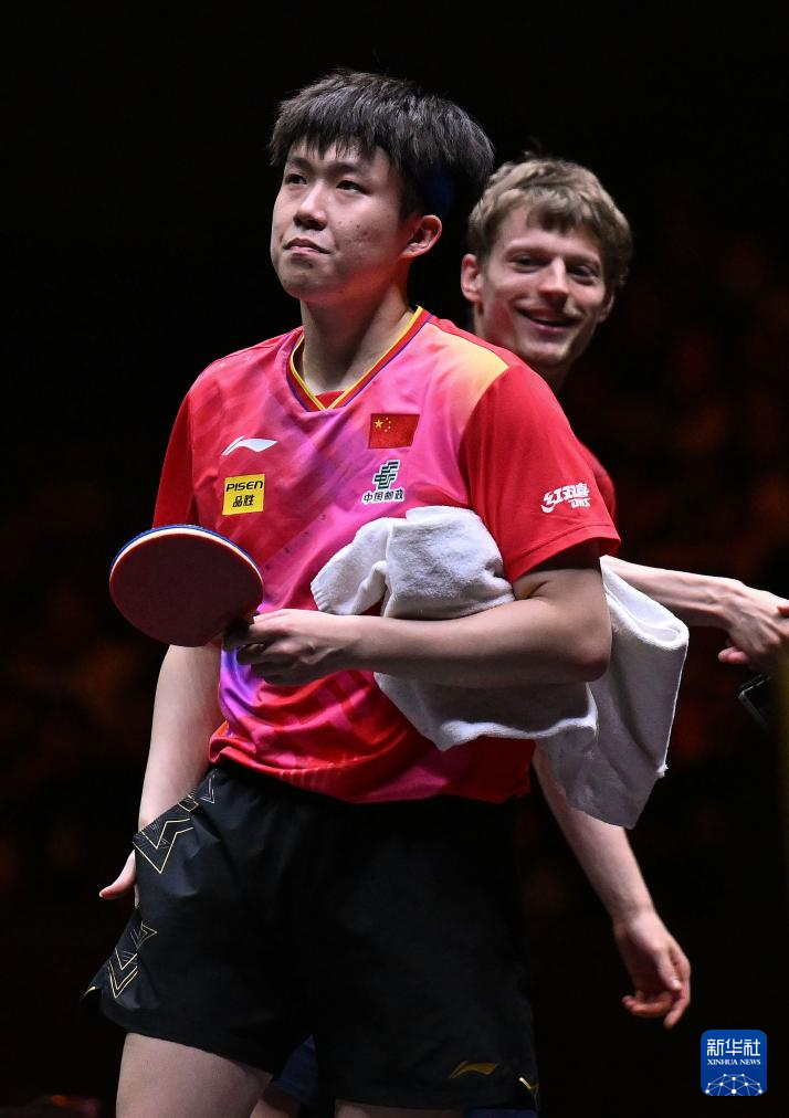 10月1日,王楚钦(右)与安德斯·林德在比赛后。