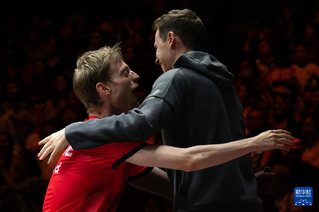 10月1日,安德斯·林德(左)比赛获胜后与教练庆祝。