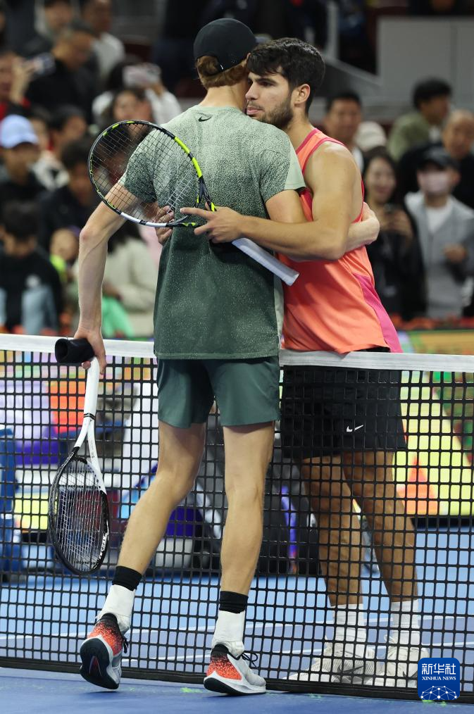 10月2日,辛纳(左)与阿尔卡拉斯在比赛结束后拥抱。