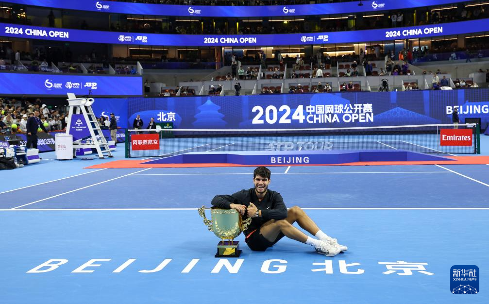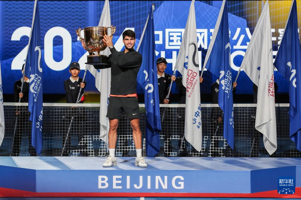 当日,在北京进行的2024中国网球公开赛男子单打决赛中,西班牙选手阿尔卡拉斯2比1战胜意大利选手辛纳,夺得冠军。