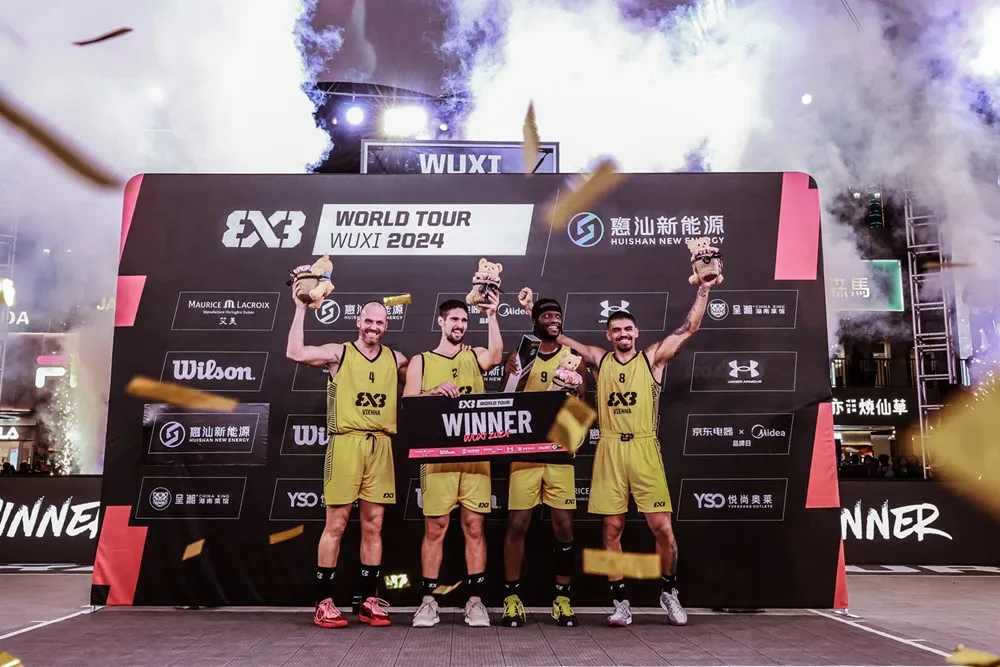 新华社南京10月2日电(记者王恒志)2024国际篮联三人篮球(FIBA 3x3)世界巡回无锡大师赛2日在江苏无锡结束,维也纳队连续三场比赛“绝杀”对手,获得冠军。前美职篮球员考辛斯领衔的无锡文旅惠汕队止步半决赛。