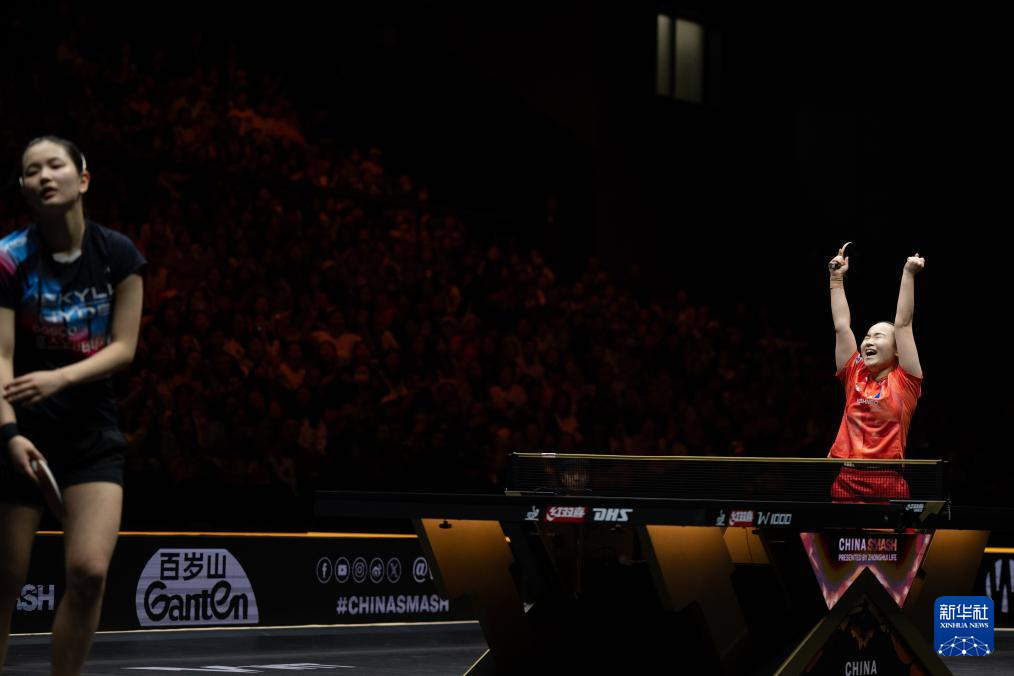 10月3日,伊藤美诚(右)在获胜后庆祝。