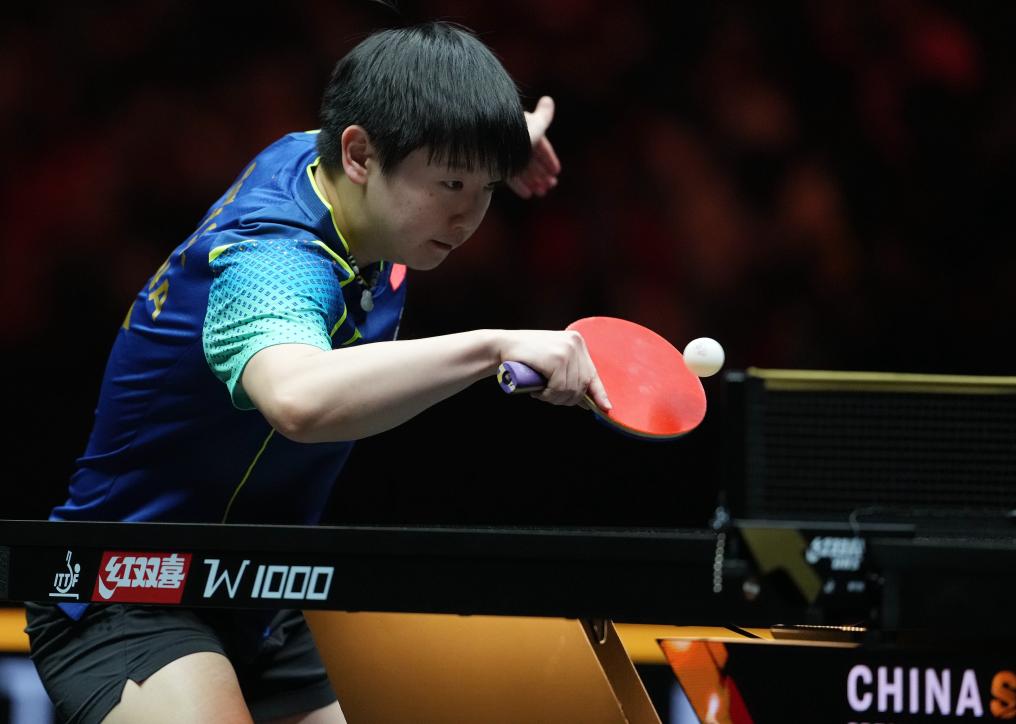 10月3日,孙颖莎在比赛中回球。新华社记者 张晨霖 摄