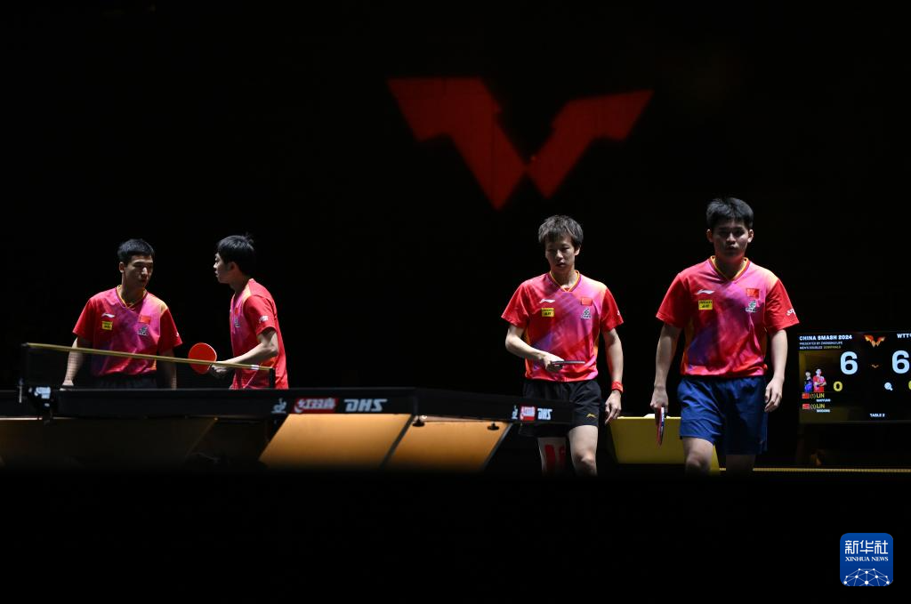 当日,在北京举行的2024年世界乒乓球职业大联盟(WTT)中国大满贯赛男双半决赛中,中国选手林高远/林诗栋3比2战胜队友袁励岑/向鹏,晋级决赛。