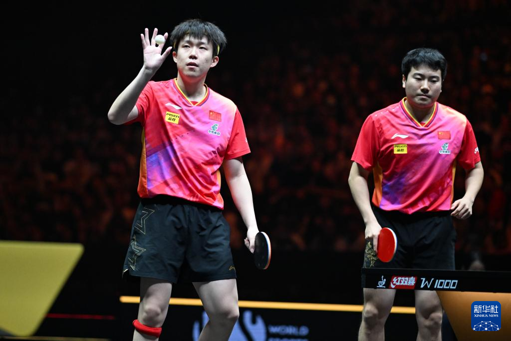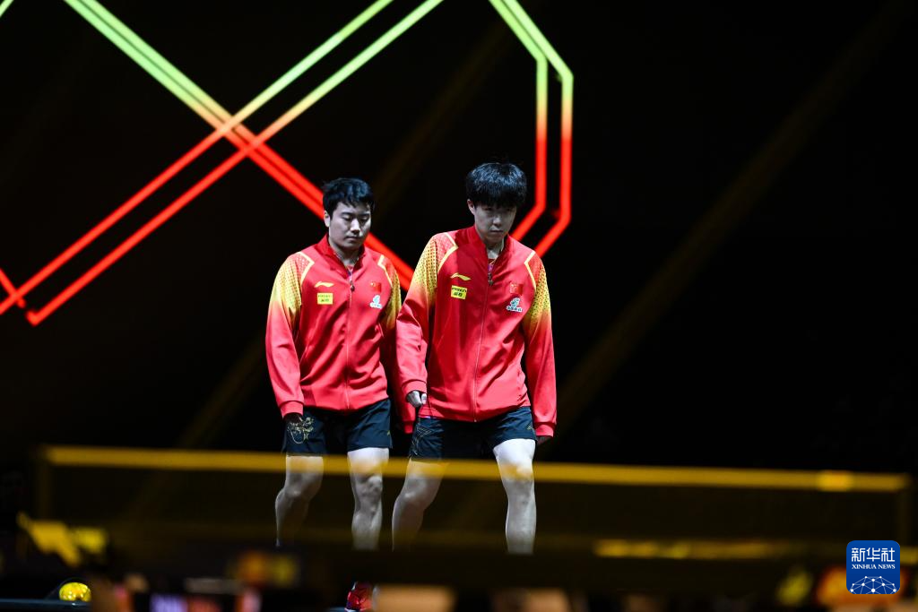 10月4日,王楚钦(左)/梁靖崑在比赛中。
