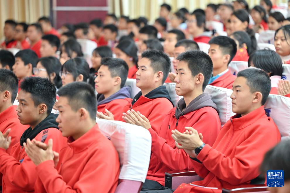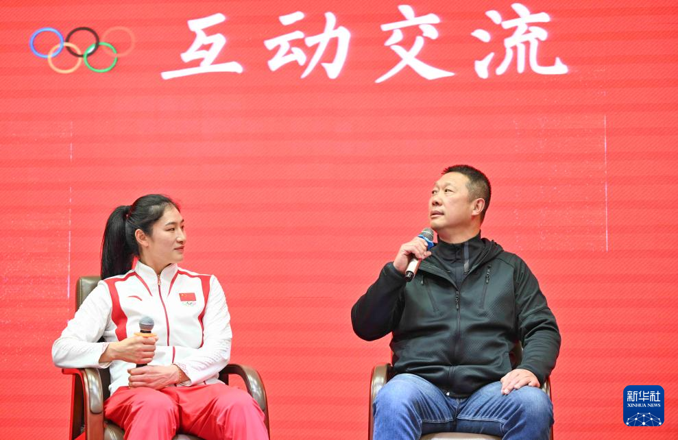 10月4日,常园在乌鲁木齐市体育运动学校和学生分享成长经历。