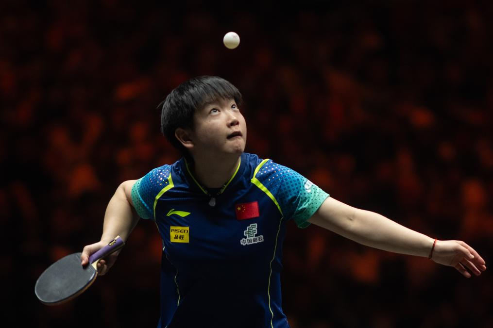 10月4日,孙颖莎在比赛中发球。新华社记者 肖艺九 摄