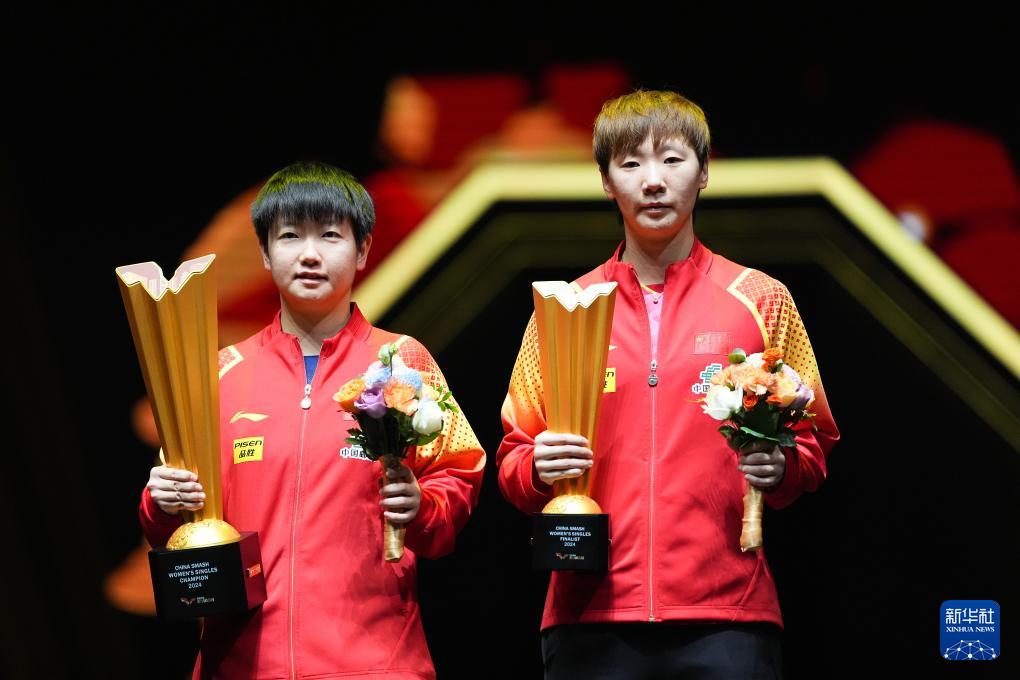 当日,在北京举行的2024年世界乒乓球职业大联盟(WTT)中国大满贯女子单打决赛中,中国选手孙颖莎4比2战胜队友王曼昱,夺得冠军。