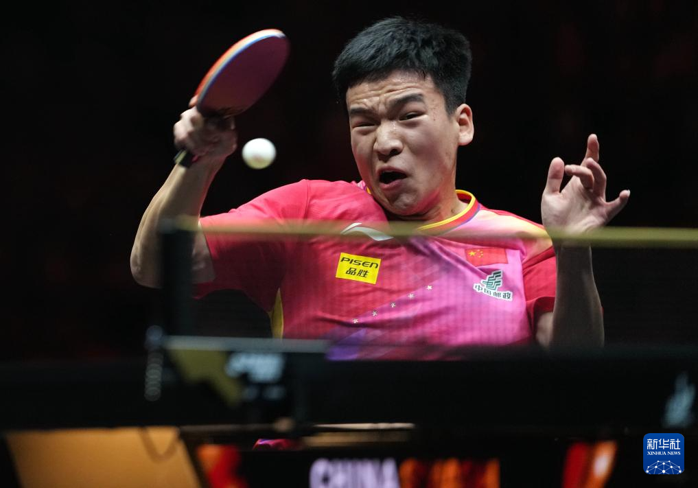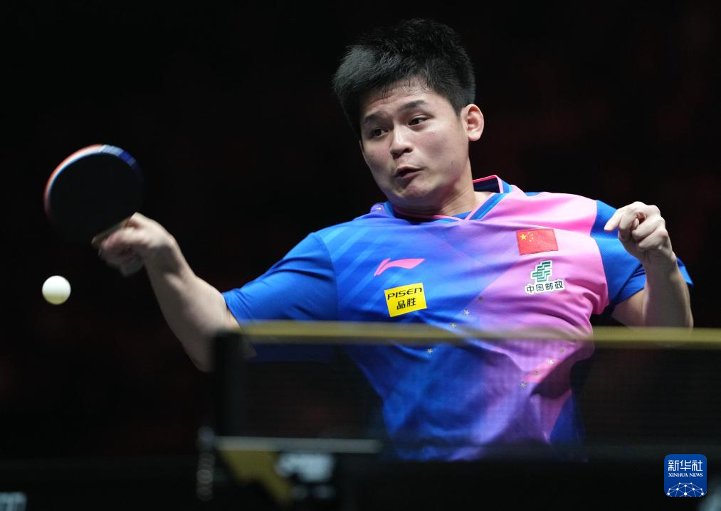 10月5日,林诗栋在比赛中回球。