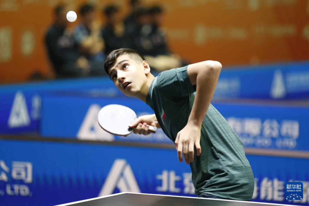 10月8日,伊朗选手法拉吉在比赛中发球。最终,他3比2战胜中国选手王楚钦。