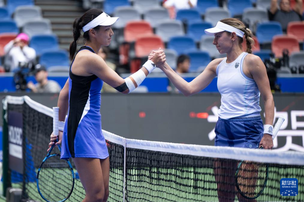 10月11日,王欣瑜(左)在赛后与亚历山德洛娃握手致意。