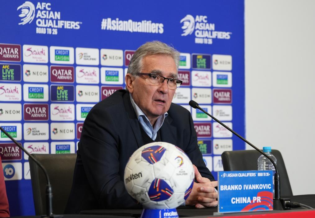 10月10日,中国队主教练伊万科维奇在赛后发布会上。新华社发(谢思达 摄)