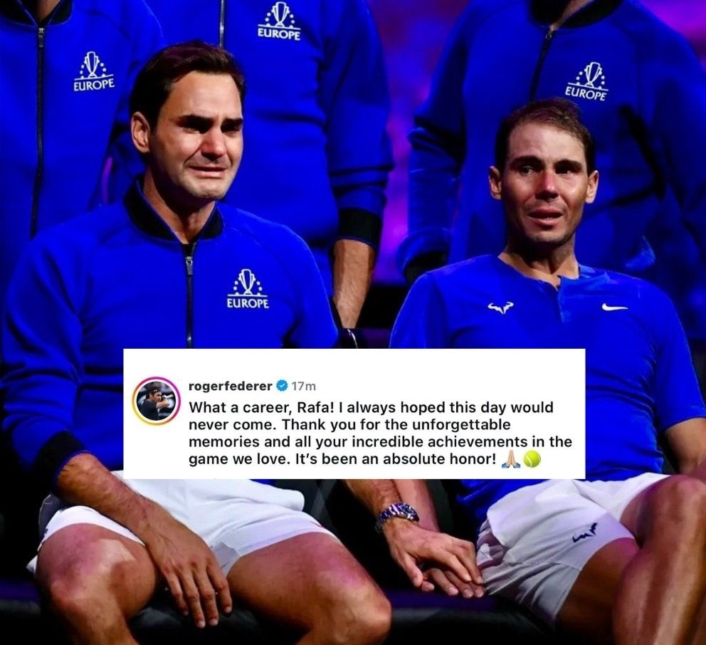 “多么成功的职业生涯啊,拉法!”已经退役的瑞士“天王”费德勒在个人社交媒体上写道,“我总希望这一天永远不会到来。感谢你带来的难忘回忆,还有你在我们共同挚爱的这项运动中取得的非凡成就。”