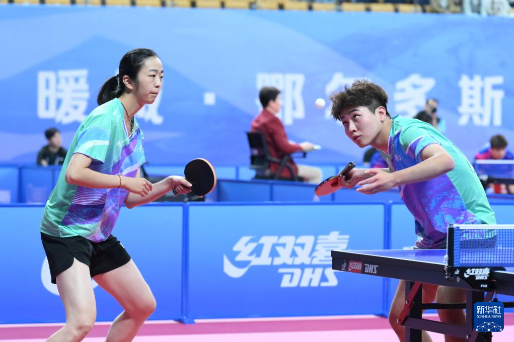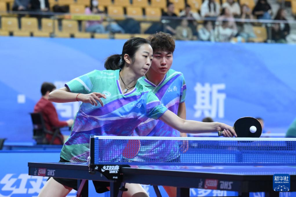 10月11日,山西队组合张明昊/张优佳(左)在混合双打资格赛中。最终,他们3比0战胜福建队组合罗杰乘/姚梓旋,晋级下一轮。