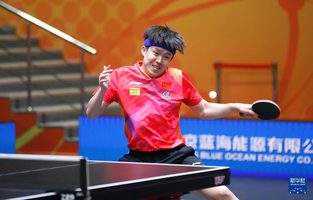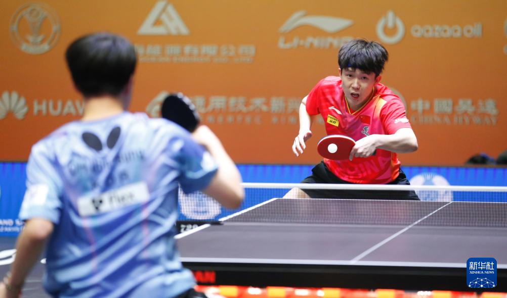 10月12日,王楚钦(右)和吴晙诚在比赛中。