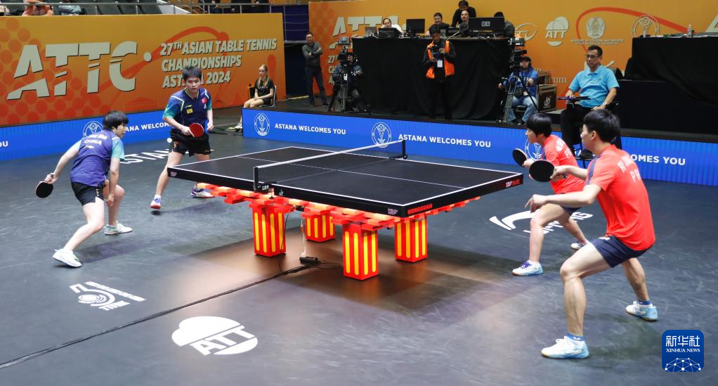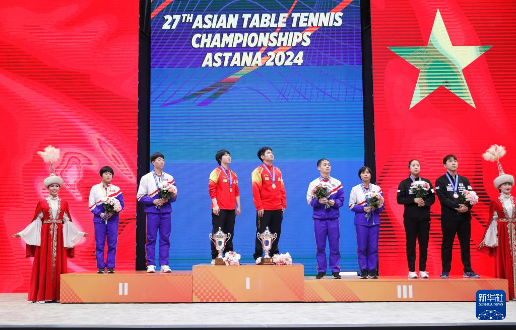 当日,在哈萨克斯坦阿斯塔纳举行的第27届亚洲乒乓球锦标赛混双决赛中,中国组合林诗栋/蒯曼3比1战胜朝鲜组合李正植/金琴英,夺得冠军。