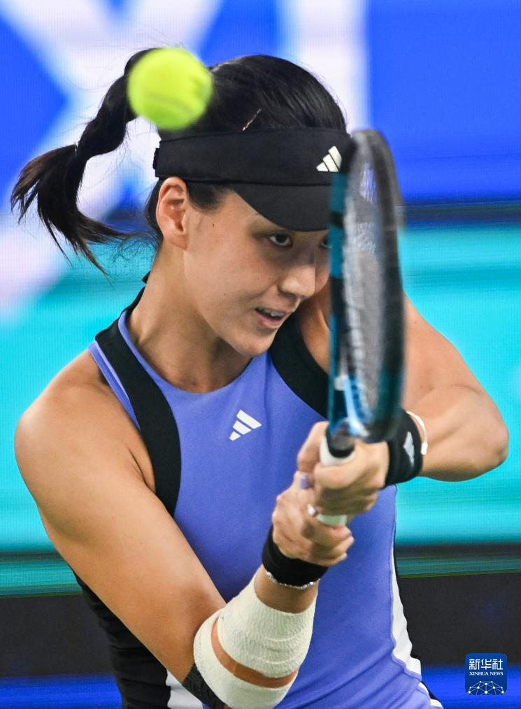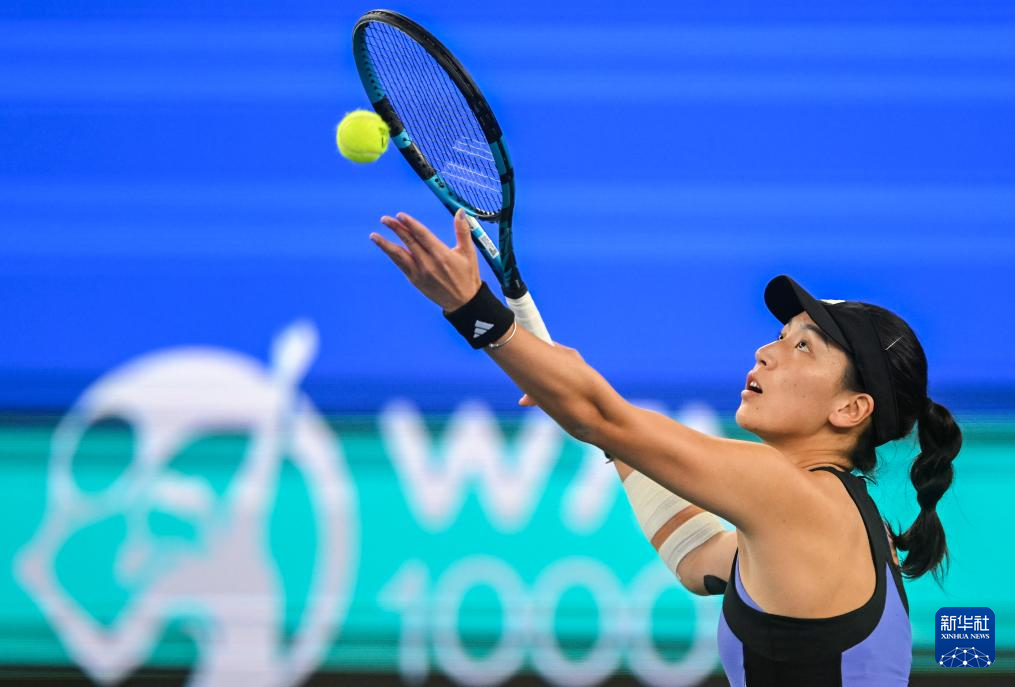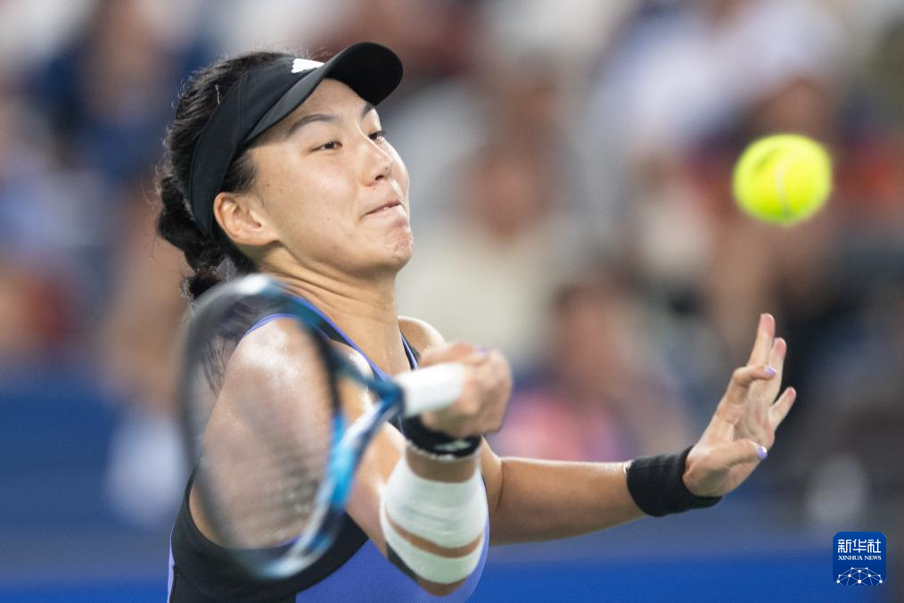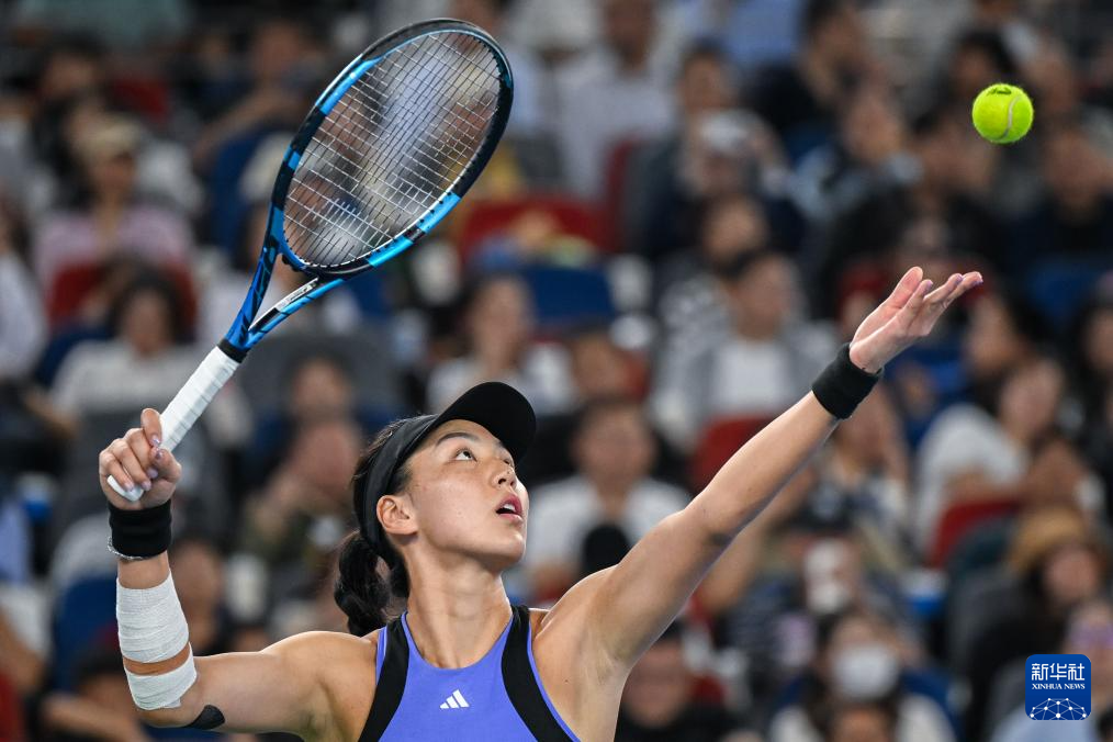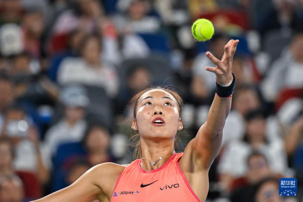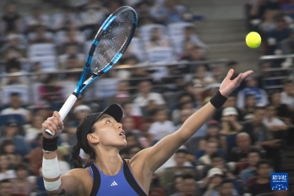 10月12日,郑钦文在比赛中。新华社记者 肖艺九 摄