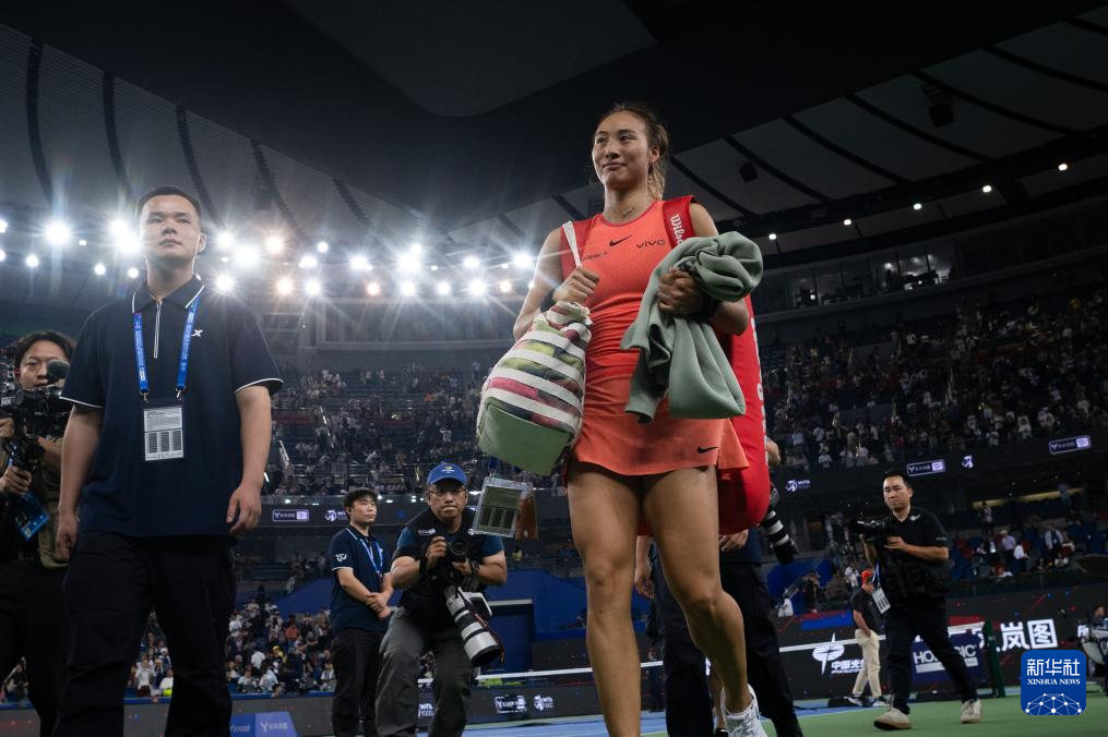 10月12日,郑钦文在赛后离场。新华社记者 肖艺九 摄