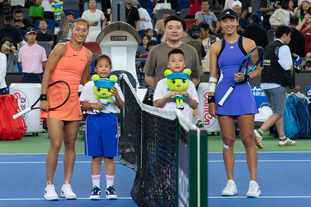 当晚是WTA1000赛历史上首次上演“金花德比”。能容纳1万5千人的光谷网球中心中央球场座无虚席,现场观众交替为两位“金花”加油。郑钦文在赛后现场采访中表示:“我觉得欣瑜今天打得非常好,我们两个在场上都是很想赢的状态。现场观众大家都是非常平等地为两个人加油,这种感觉还不赖。”