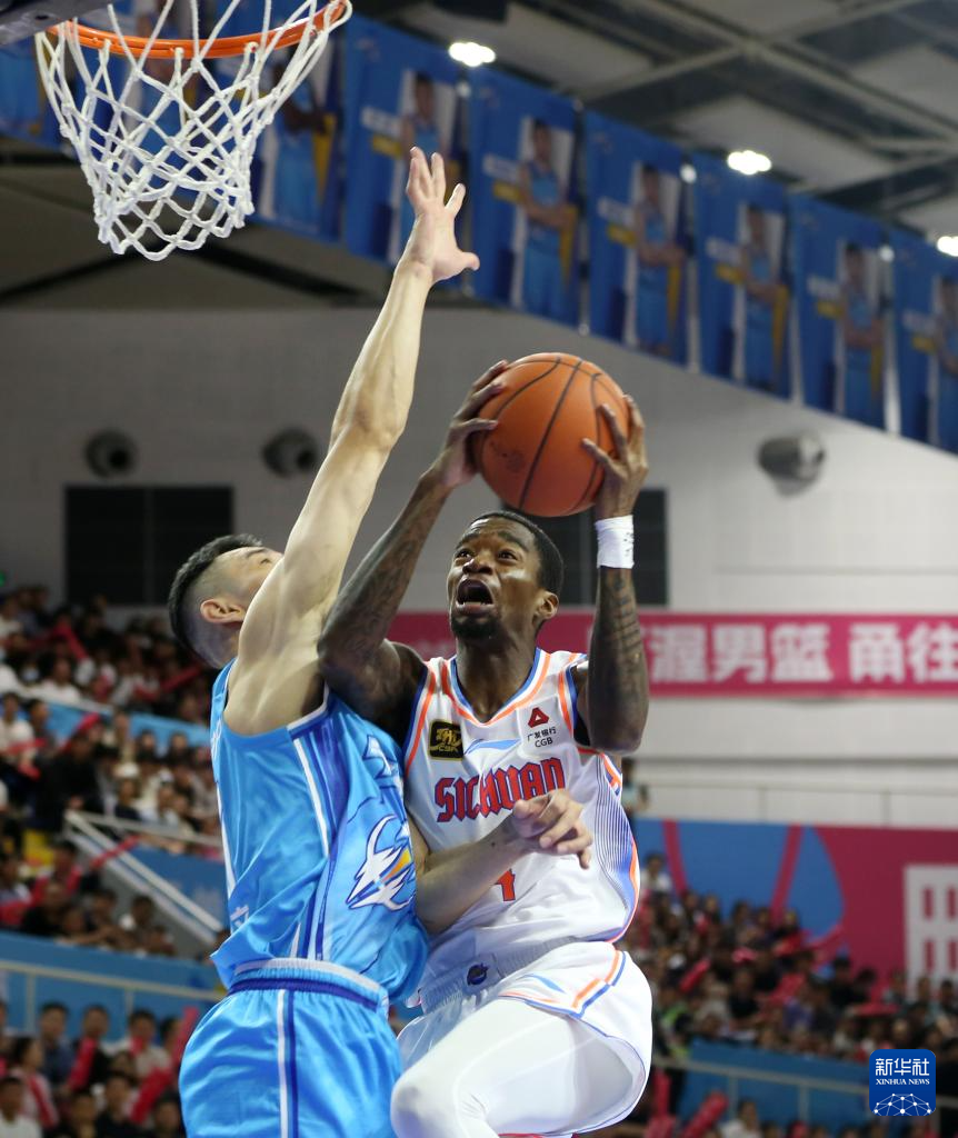 10月13日,四川丰谷酒业队球员萨姆纳(右)在比赛中上篮。
