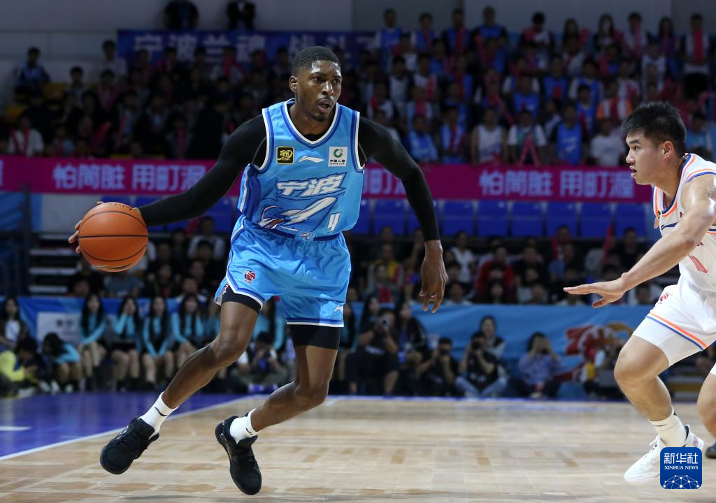 10月13日,宁波町渥队球员霍华德(中)在比赛中运球。