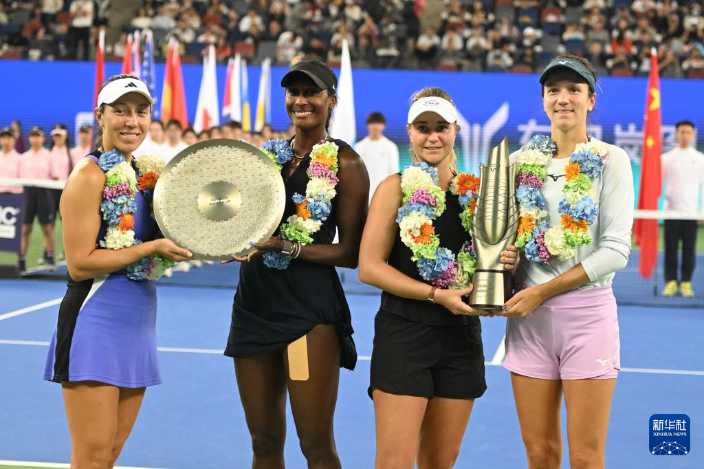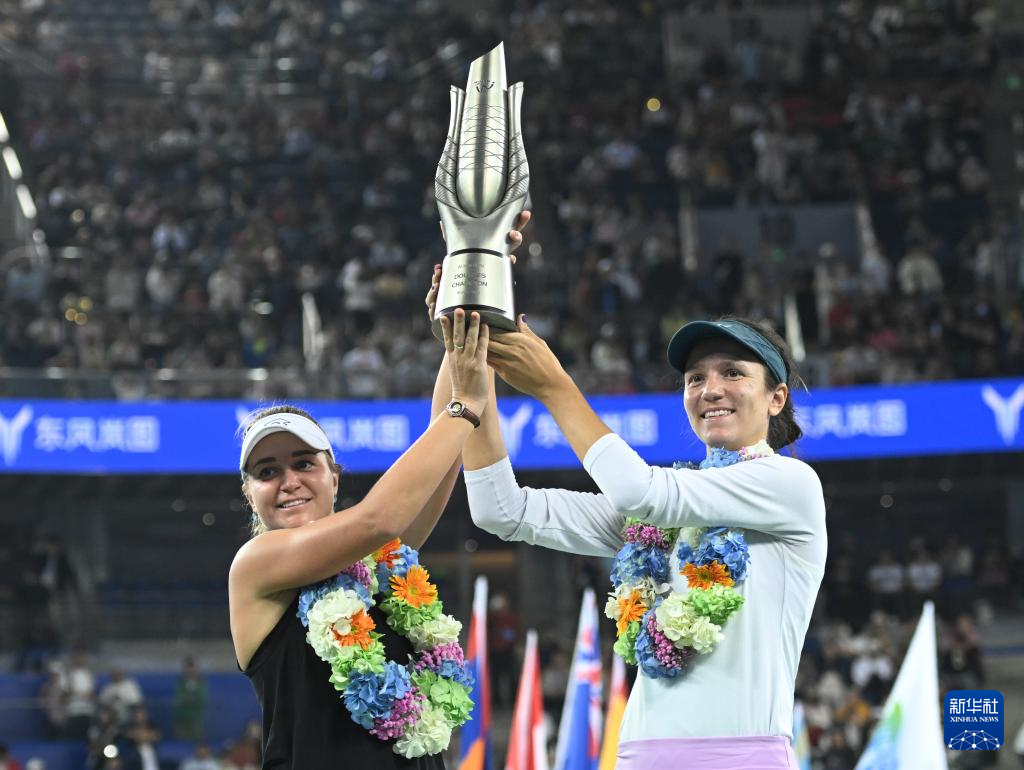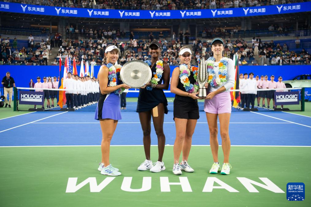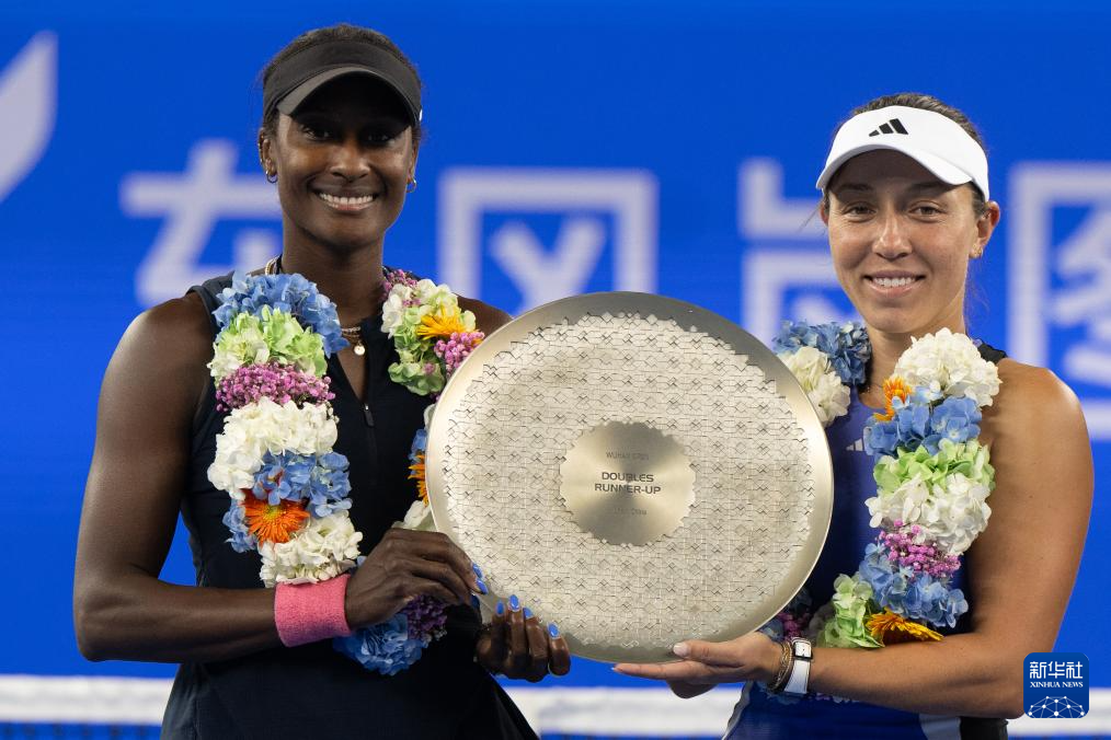 当日,在2024年WTA武汉网球公开赛女双决赛中,达尼丽娜(哈萨克斯坦)/克罗玛查娃(俄罗斯)2比0战胜美国组合穆罕默德/佩古拉,夺得冠军。