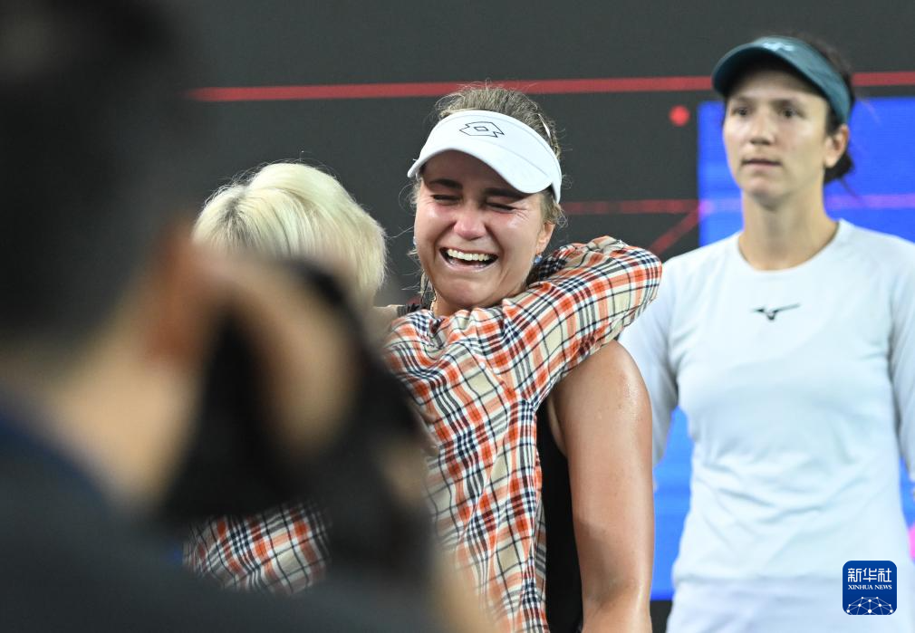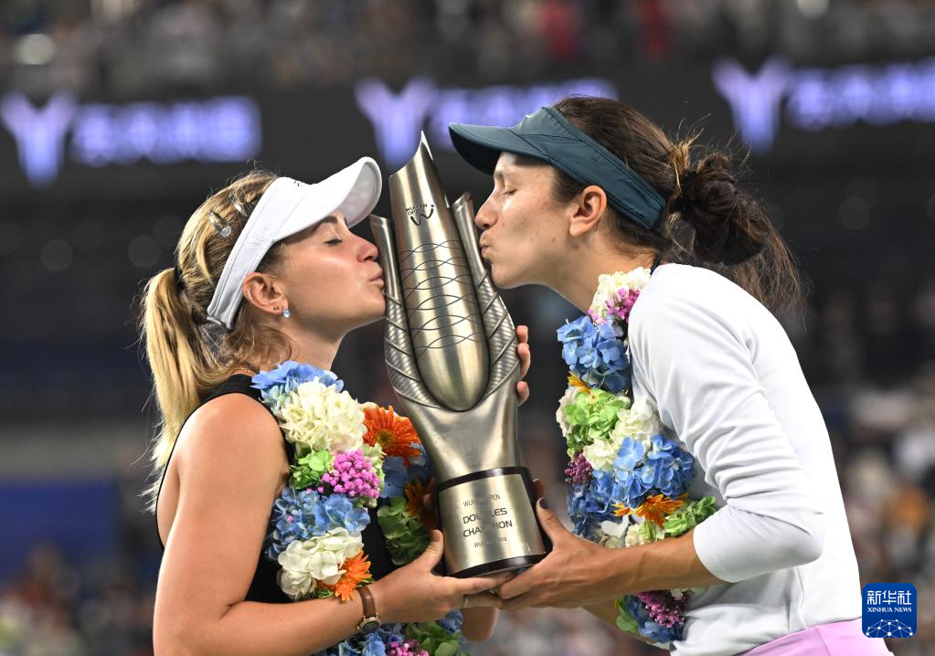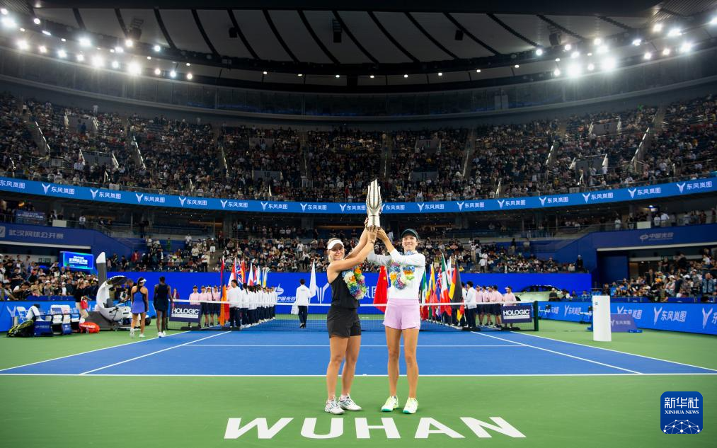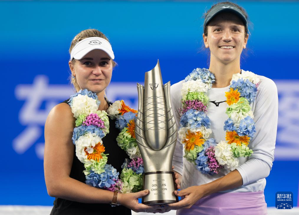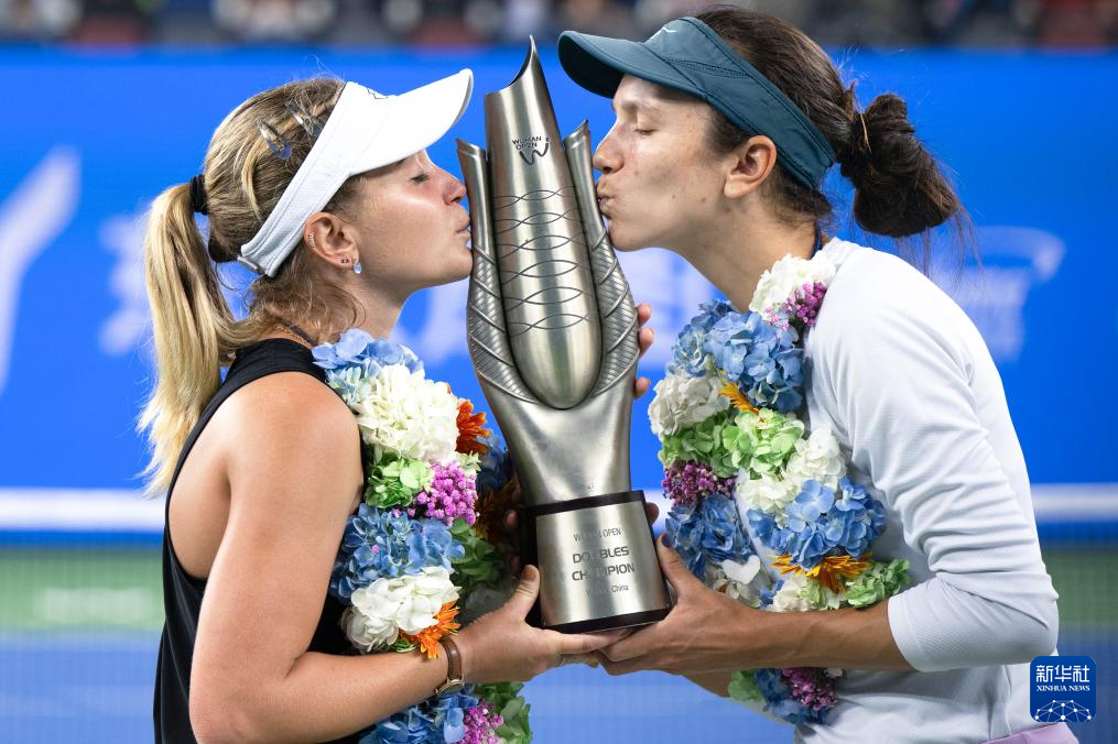 当日,在2024年WTA武汉网球公开赛女双决赛中,达尼丽娜(哈萨克斯坦)/克罗玛查娃(俄罗斯)2比0战胜美国组合穆罕默德/佩古拉,夺得冠军。