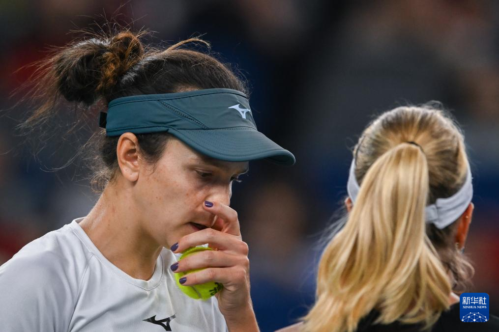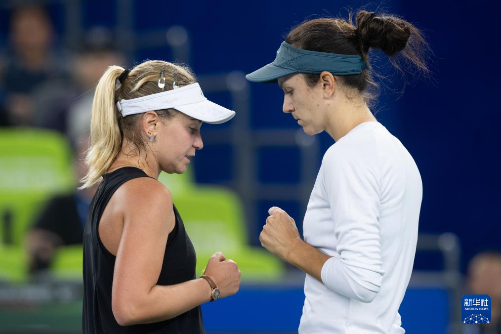 10月13日,达尼丽娜(右)/克罗玛查娃在比赛中交流。