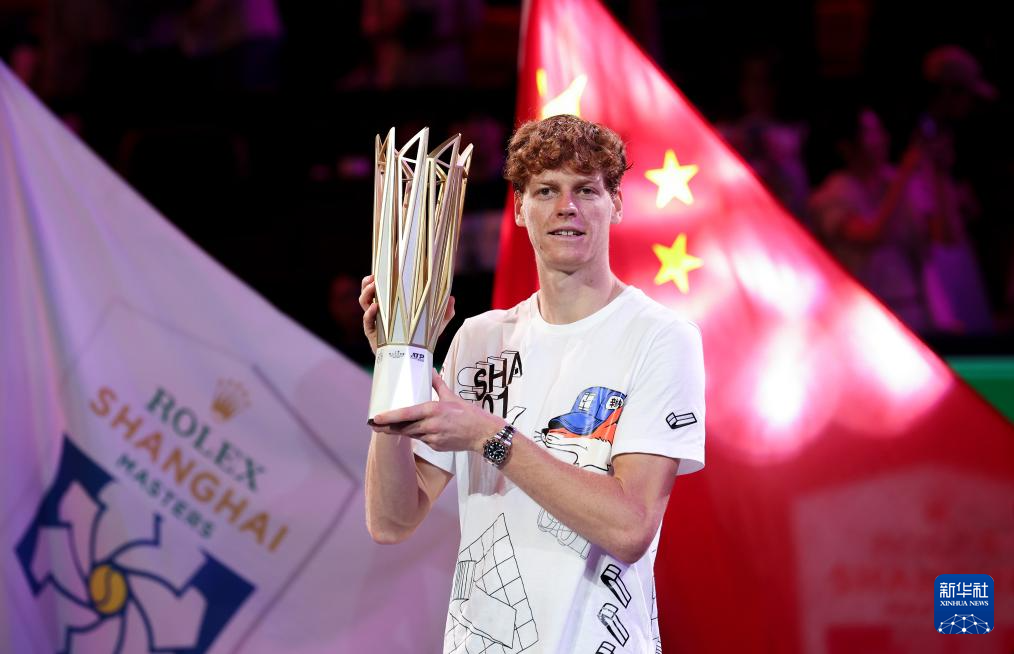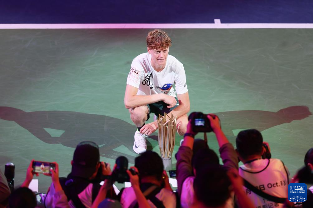 10月13日,辛纳在颁奖仪式上捧杯。