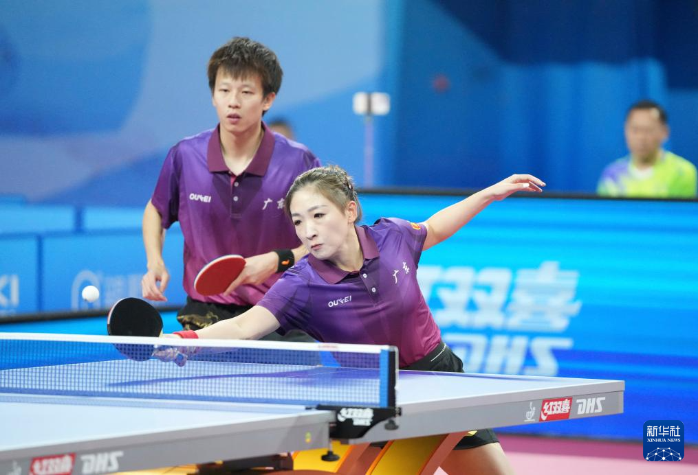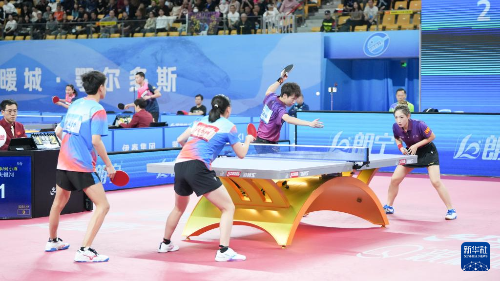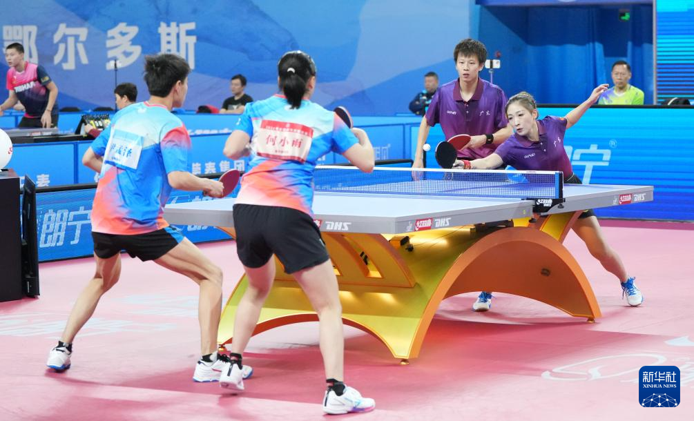 当日,在内蒙古鄂尔多斯举行的2024年全国乒乓球锦标赛混双十六分之一决赛中,广东队组合林高远/刘诗雯4比1战胜重庆银河队组合尹孟泽/何小雨,晋级十六强。