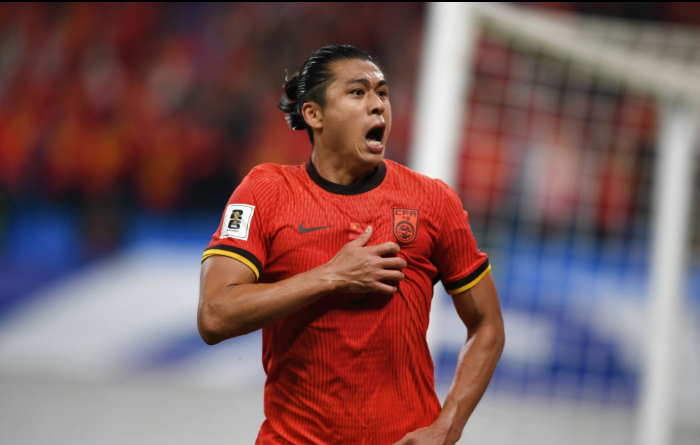 10月15日,中国队球员张玉宁庆祝进球。新华社记者 李紫恒 摄
