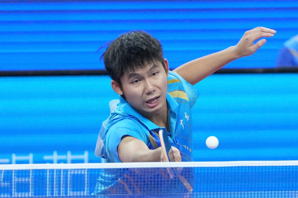 10月14日,敖华磊在比赛中回球。
