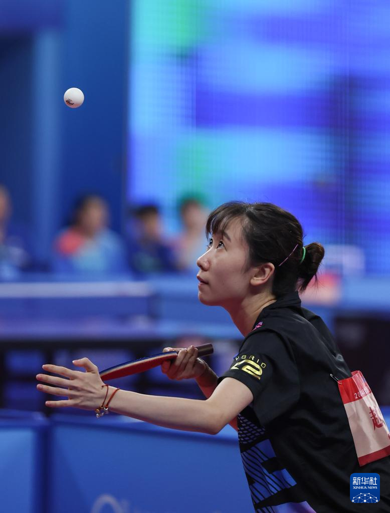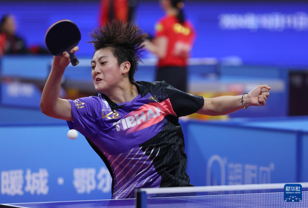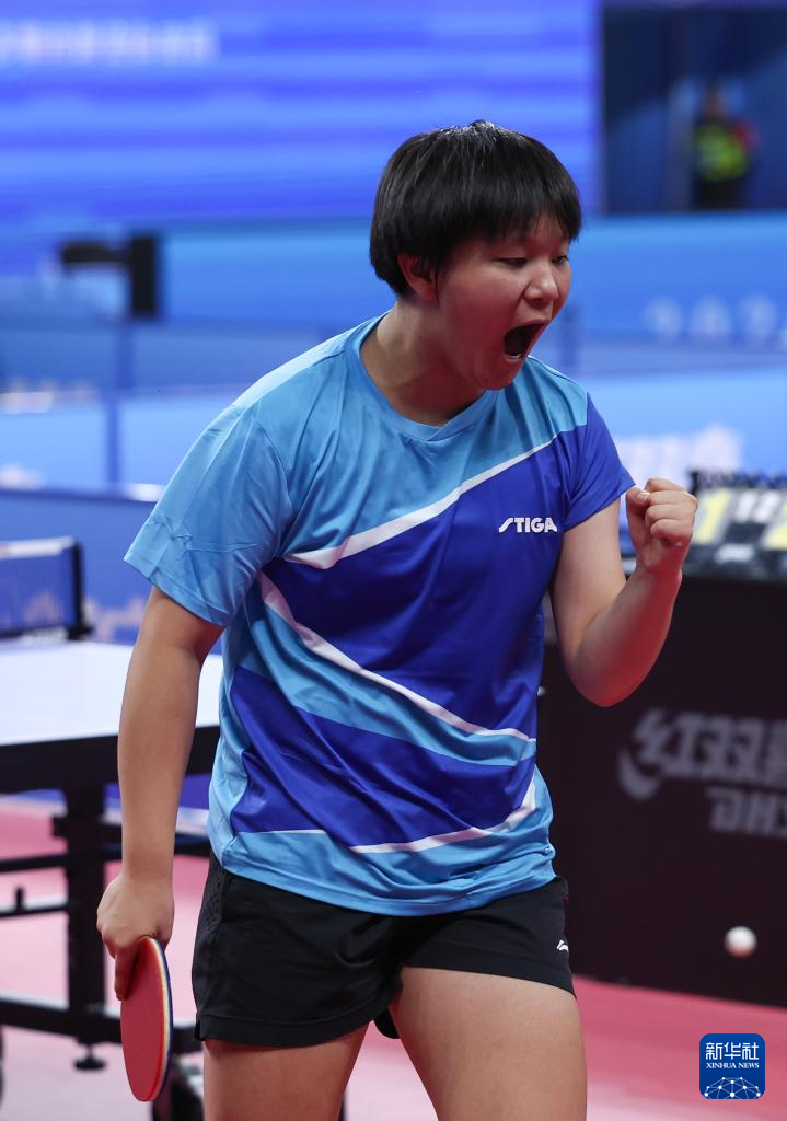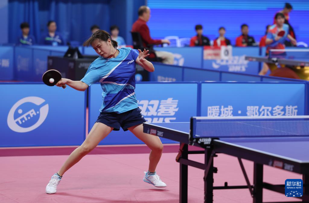 当日,在内蒙古鄂尔多斯进行的2024年全国乒乓球锦标赛女子团体小组赛首轮比赛中,湖北队3比2战胜陕西队。