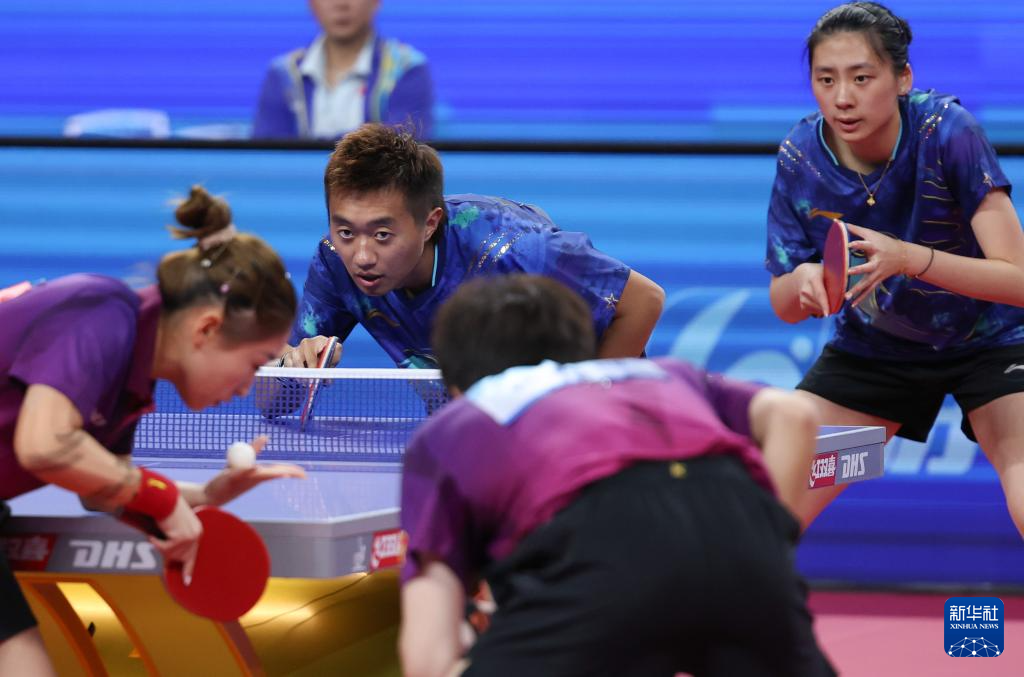 10月15日,林高远(左二)/刘诗雯(左一)、赵子豪(右二)/陈熠在比赛中。
