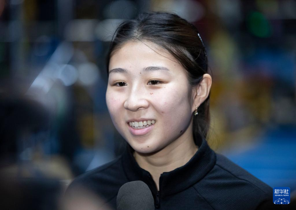 10月17日,中国短道速滑队队员公俐接受媒体采访。