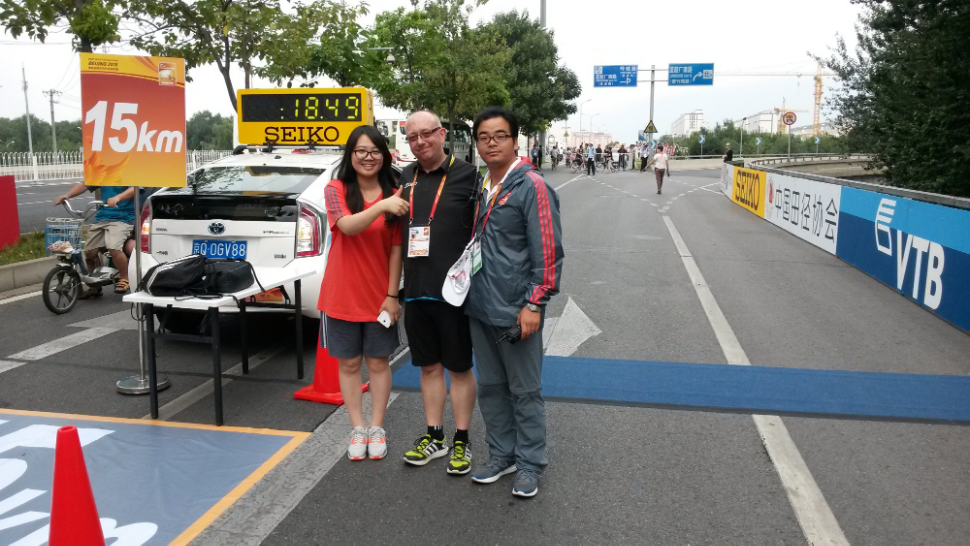 2011年至2016年我连续6年也作为北京马拉松裁判参与了不同岗位。这六年来,每年北马这天,我都会头顶繁星来到北马赛道,履行不同岗位的裁判职责:我曾作为起点的裁判员为万人起跑做准备,仔细检查运动员身份、为运动员有序存放衣物、做好运动员分区起跑;在分叉路口、观众聚集区域、和易发生危险路段作为检查裁判员,挥舞旗帜为运动员指路、疏导观众保证赛道安全,严格监督赛场秩序;也曾在饮用水和饮料站点,为每位运动员做好赛道的服务工作,用运动员最舒服的拿取方式给他们提供保障;还曾在在终点认真观察每一位运动员或轻松、或艰难的冲过终点,做好运动员的完赛疏导,记录运动员的名次,为他们的安全保驾护航。在每一个裁判岗位我都被这项运动所感染,运动员的坚持,观众的加油,赢得胜利的喜悦,安全完赛的自豪感让这项运动真正诠释了体育运动的真谛,也激发了我参与其中的激情和动力。值得一提的是,今年我又将作为北京马拉松裁判员参与这项赛事,为每一位运动员做好裁判员应有的职责,为北京马拉松这项运动贡献我的一份力量。